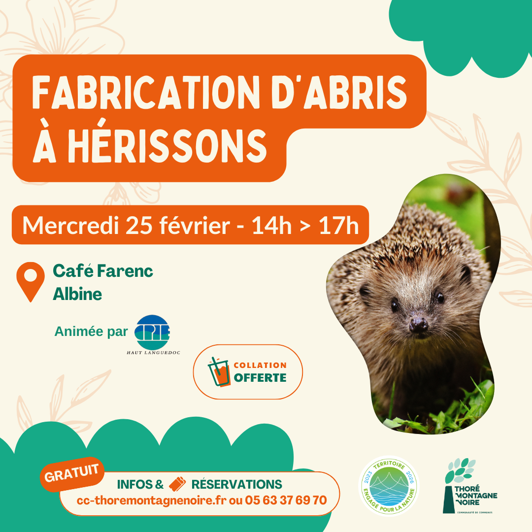 Vous voulez agir pour la biodiversité ? Rejoignez-nous pour un atelier de construction d’abris à hérissons en partenariat avec le CPIE du Haut-Languedoc !