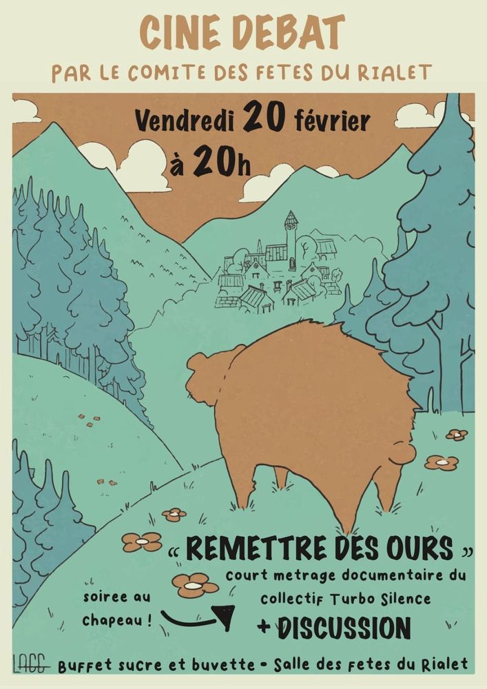Rendez vous le vendredi 20 février à 20h à la salle des fêtes du Rialet pour la projection du film documentaire « Remettre des ours ».