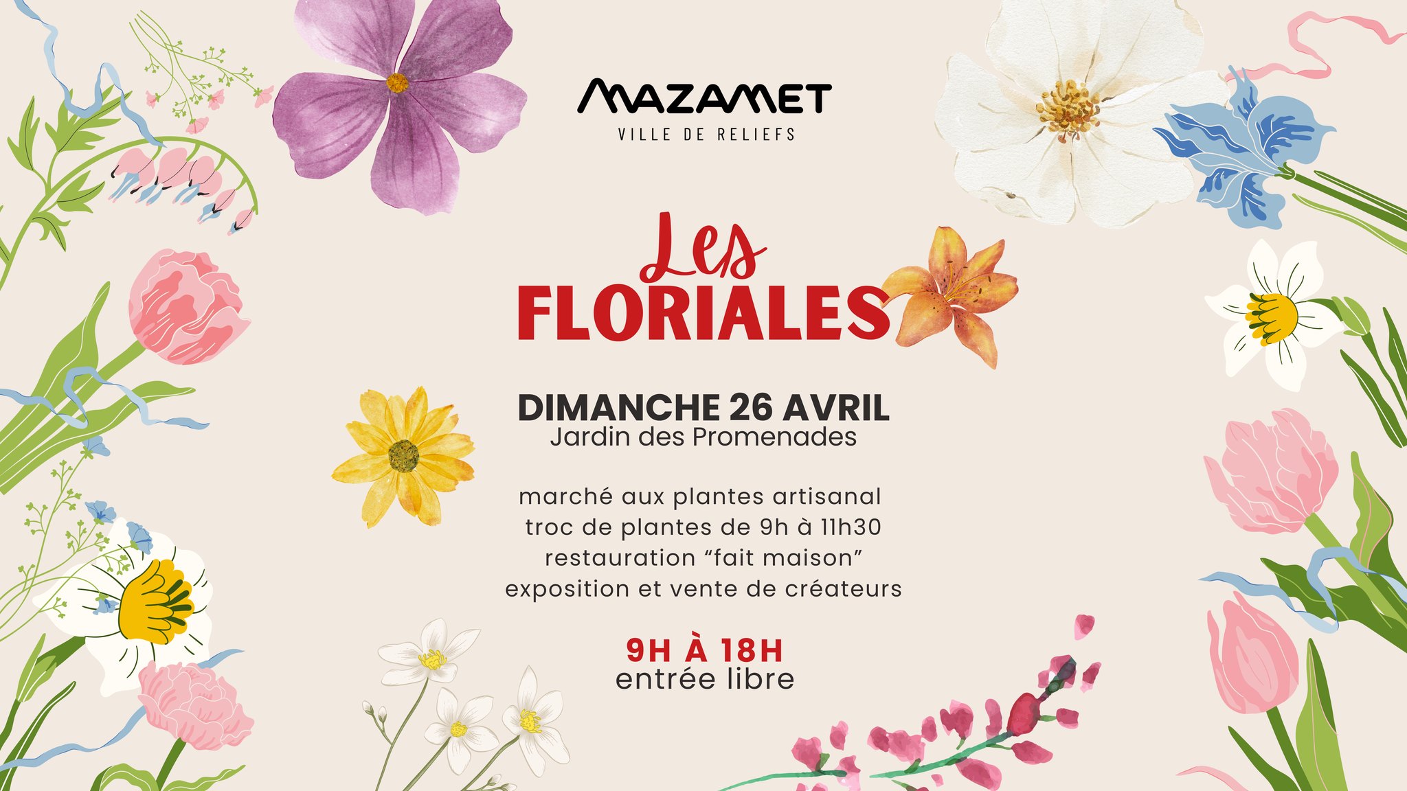 Dimanche 26 avril 2026 de 9h à 18h.
