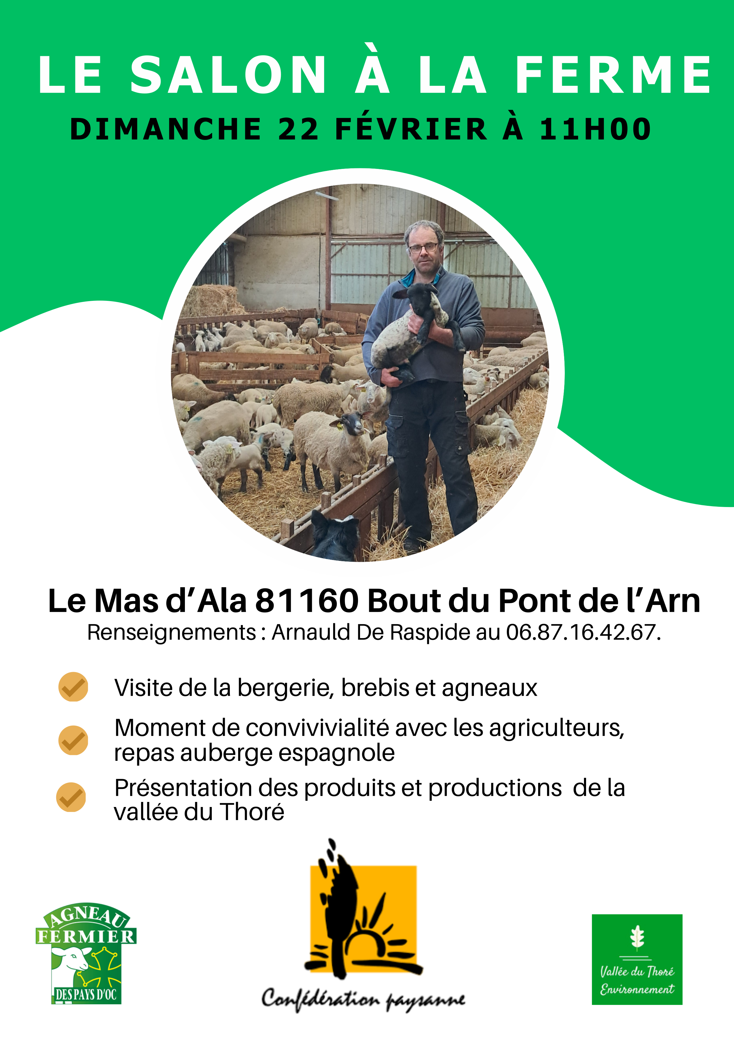 Arnauld de Raspide vous accueillera sur sa ferme le dimanche 22 février à partir de 11h pour une visite de la bergerie suivi d’un moment de convivialité avec un repas mode auberge espagnole en partenariat avec l’association Vallée du Thoré Environnement, présentation des productions et des produits de la vallée.