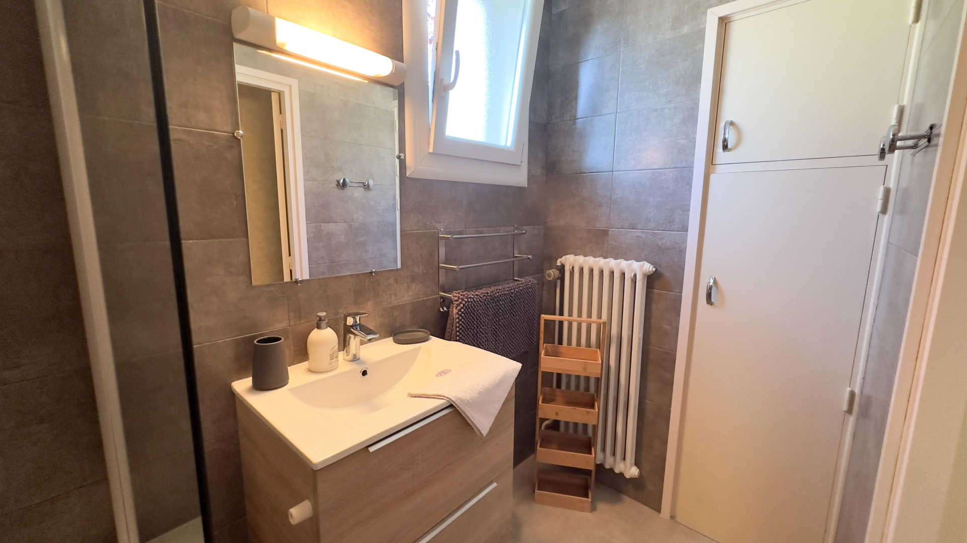 À l’étage se compose de 3 chambres et d’une salle de bain avec baignoire.