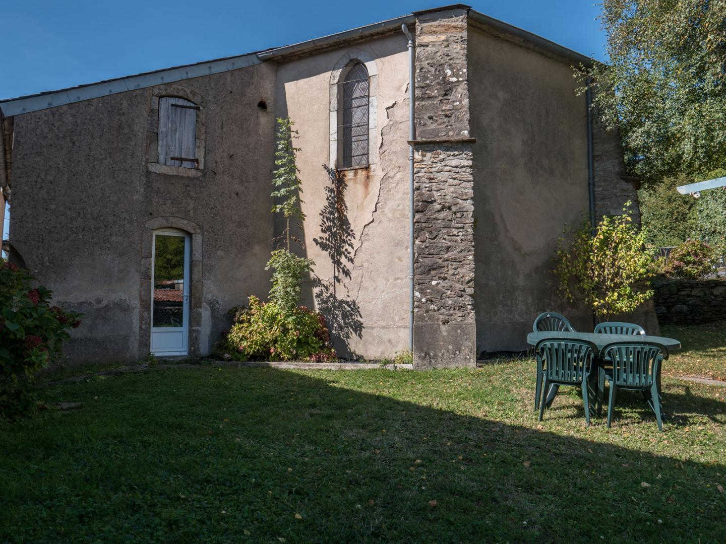 A l’arrière, agréable petit jardin clos (excepté une largeur de 2m), jouxtant l’église et le cimetière, à partager avec l’autre gîte.