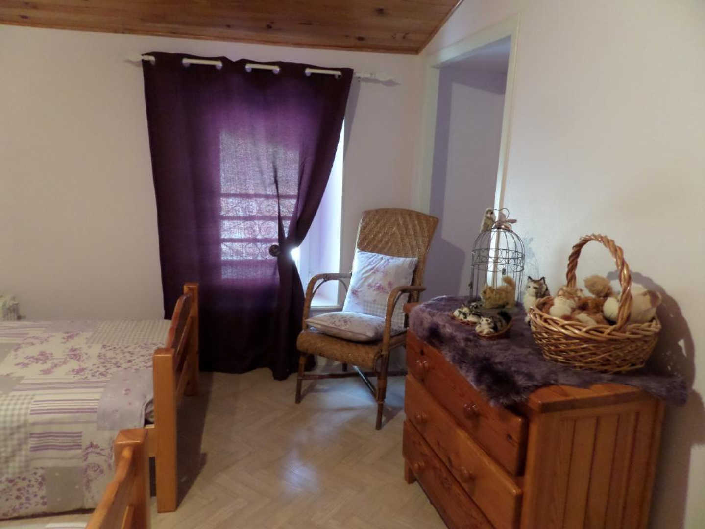 Rez-de-chaussée : hall d’entrée avec cheminée, cuisine indépendante toute équipée (1 cafetière à dosettes Senseo et 1 cafetière à filtre), salon/salle à manger (canapé convertible), chambre, salle d’eau avec wc, buanderie (lave-linge, sèche-linge, mini congélateur) par laquelle on accède à l’étage (escalier raide). A l’étage : deux chambres, salle d’eau avec wc. Chauffage central fioul. Lits bébé à disposition.