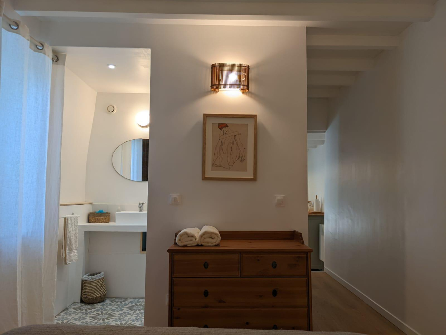 Au bout du couloir, 1 chambre (avec 1 un lit de 160cm), 1 salle d’eau et 1 wc indépendant vous attendent.