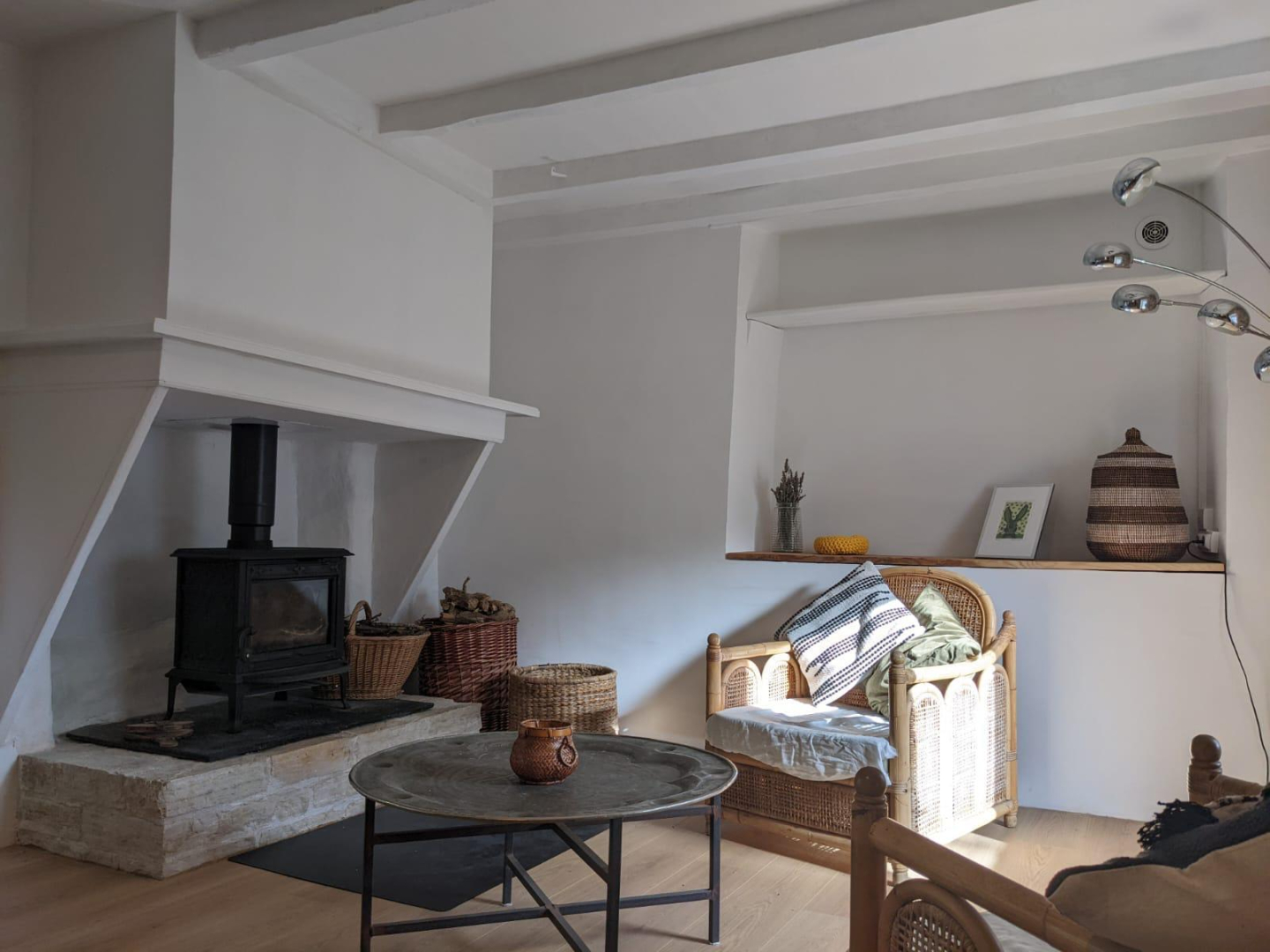 Alliant le rustique et le fonctionnel, un poêle à bois est à votre disposition en cas de frimas.